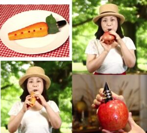 りんごの芯抜き器で野菜に穴を開けマウスピースをつけて吹いてみたのをきっかけに、